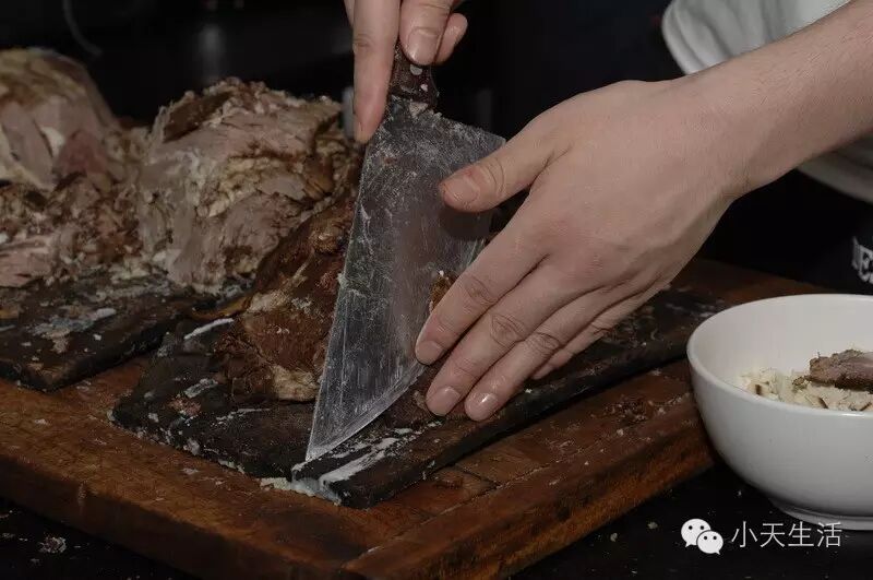 两小时后,时间到了下午17:30,操作间里已经满满的都是肉香,现在就可以来放羊肉了。