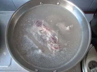 8、锅开后,将血沫舀出,捞出羊肉洗净