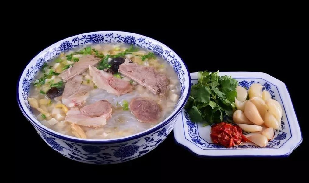 牛羊肉泡馍,唐肃宗行军时“托尔木(坨坨馍)”与羊羹同食。后因宋太祖赵匡胤再度寻访美味而名声大震。