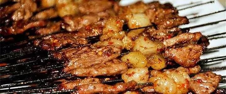 西安的肉串已经从5元10元一串的大串,进化到2毛、3毛一串的小串。每串肉量很少,却很容易入味,吃的就是功夫。 本地人叫老板“来一把烤肉”,吃饱了才数签子、算钱,吃好的衡量标准是“饱了”。 我们吃的是一种爽快,多少钱最后才算。
