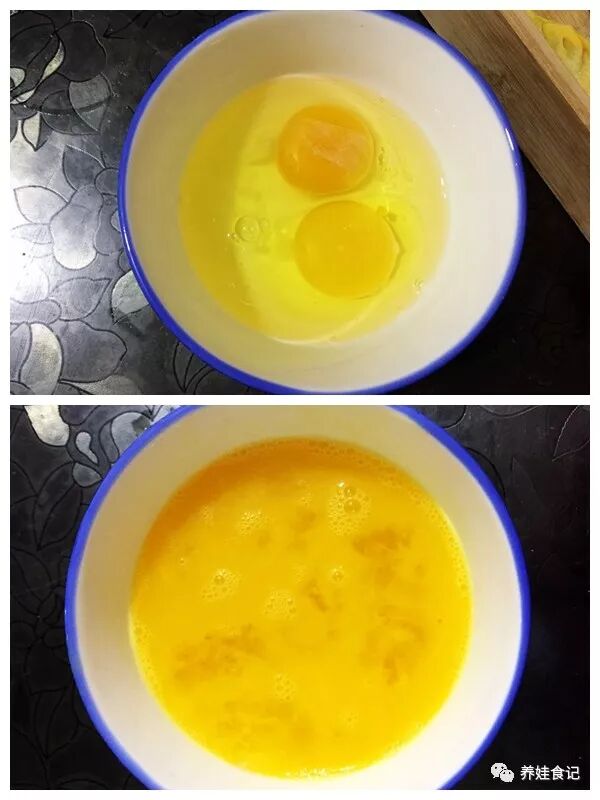 10、两个鸡蛋打散,加入少量温开水,加少许盐,一点点味素。