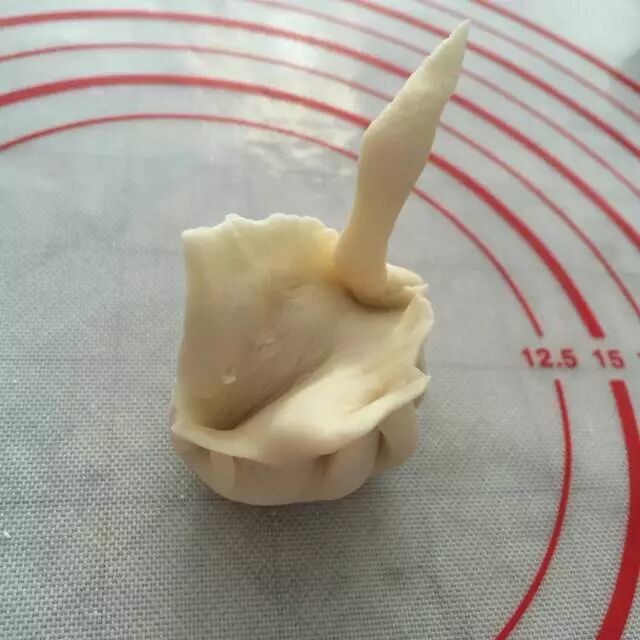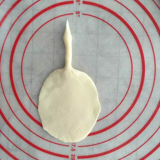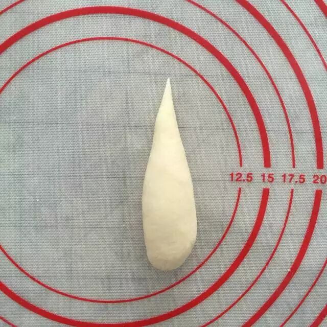 3、分8份,每份大约25克,揉搓成锥形,一头搓出尖;
