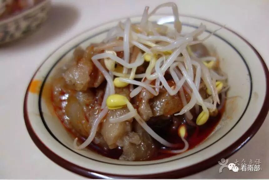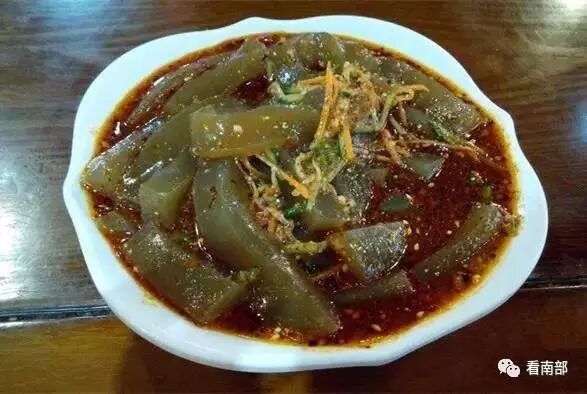 南部县民间吃凉粉的习俗历史悠久,国民时期,“凉粉担子”大街小巷随处可见,较著名的是张爷庙旁边摆的“高担子凉粉”。其原材料都以豌豆加工成豆粉为主,后来,人们经过多次实践,改用了以廉价的红苕作食材,打制红苕凉粉,“糯砣子凉粉”便应运而生了。
