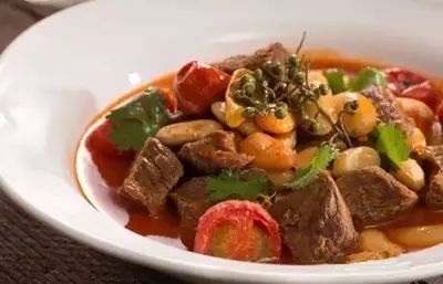 1、有机番茄对切,烤制皮收紧取出,白芸豆蒸发至酥烂待用;牛肉煲至酥烂备用。