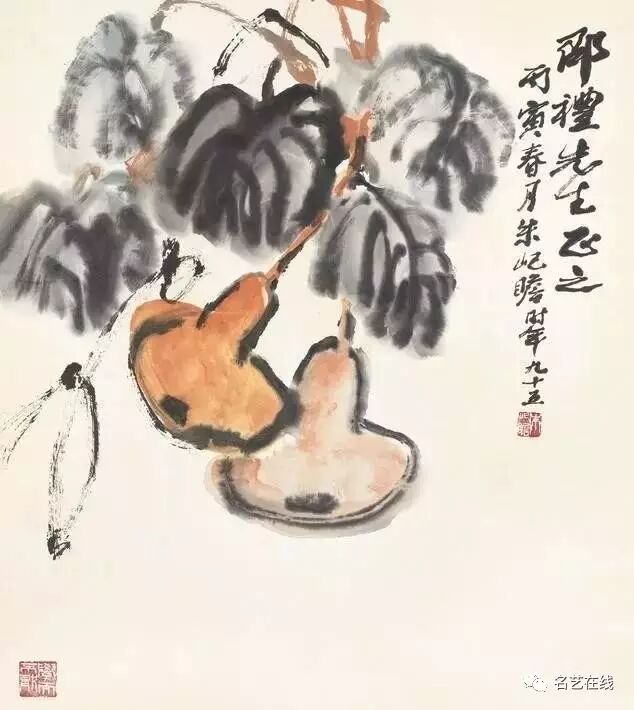 朱屺瞻先生也善于画葫芦,启功先生曾做过一首诗《朱屺瞻先生画葫芦》,其中这样写道:“造化随人笔仗,到处天机奔放。谁云依样葫芦,未有葫芦一样。”