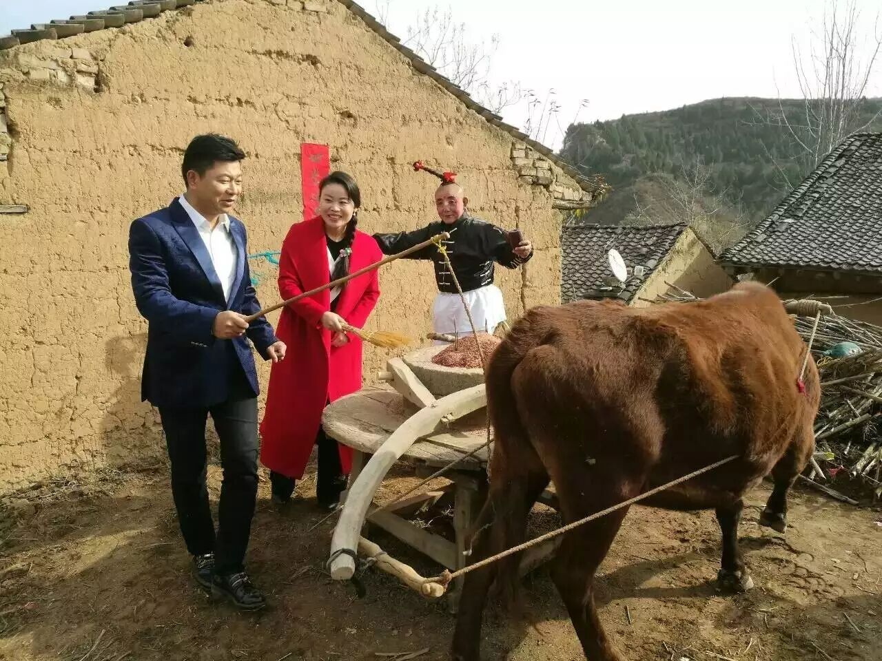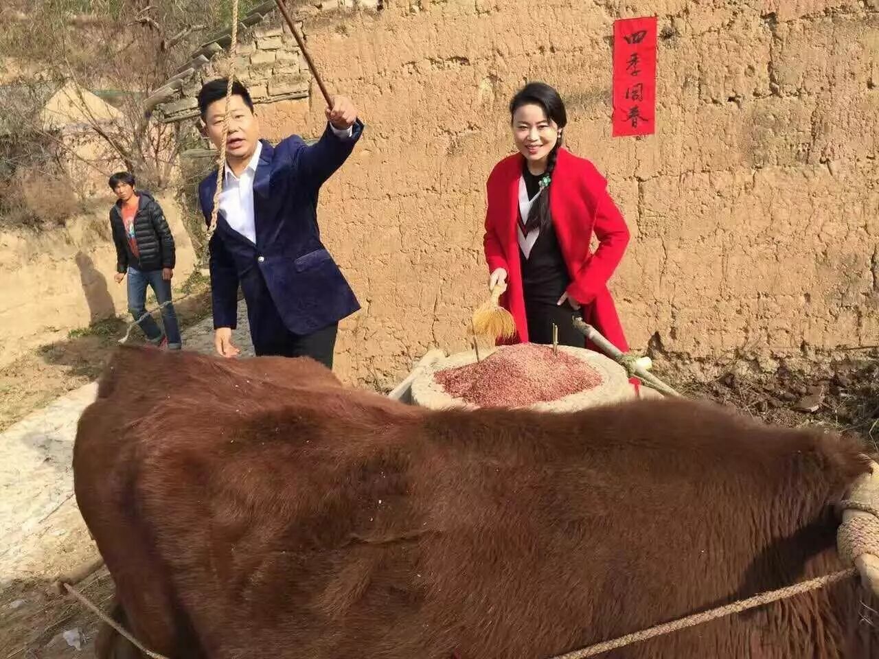 乔军、草帽姐在宝鸡陇县赶牛推磨