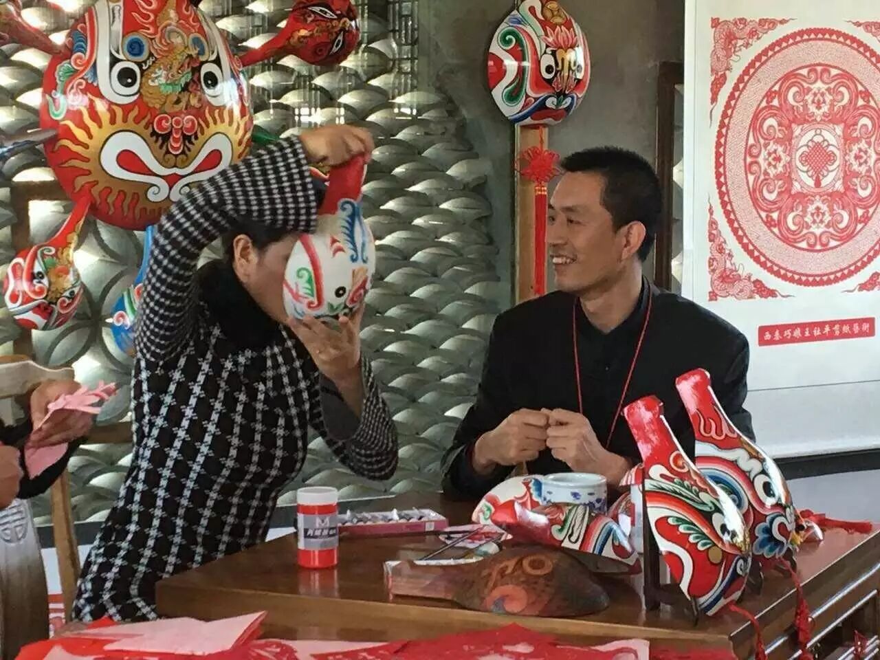 降央卓玛跟宝鸡民间艺人学画社火脸谱