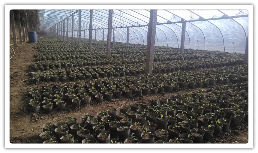 大棚育苗时间一般在 1月-2 月,此时气温较低,苗床上铺设电加温线。 当子叶展平,第一片真叶露心叶时进行分苗, 分苗后要做好苗床的保温、保湿工作,使苗床温度不低于 10℃,定植前 7~10 d 进行低温炼苗。