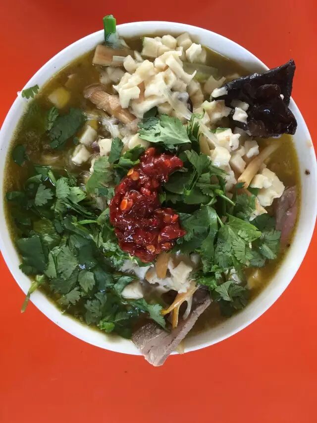 羊肉泡馍简称羊肉泡、泡馍。古称"羊羹",西北美馔,尤以陕西西安最享牛羊肉泡馍盛名,它烹制精细,料重味醇,肉烂汤浓,肥而不腻,营养丰富,香气四溢,诱人食欲,食后回味无穷。北宋著名诗人苏轼留有"陇馔有熊腊,秦烹唯羊羹"的诗句。因它暖胃耐饥,素为西安和西北地区各族人民所喜爱,外宾来陕也争先品尝,以饱口福。