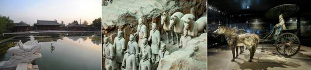 早晨前往骊山景区,先游览华清宫,参观莲花汤、海棠汤等唐朝的御用浴池遗址,然后登上半山腰的虎斑石处看兵谏亭,这里是西安事变的发生地。一边欣赏秦岭山脉风景一边听跟骊山有关的历史故事:烽火戏诸侯、唐明皇和杨贵妃等等。再去最有代表性的兵马俑博物馆,展开秦代考古之旅,晚上回到市区。