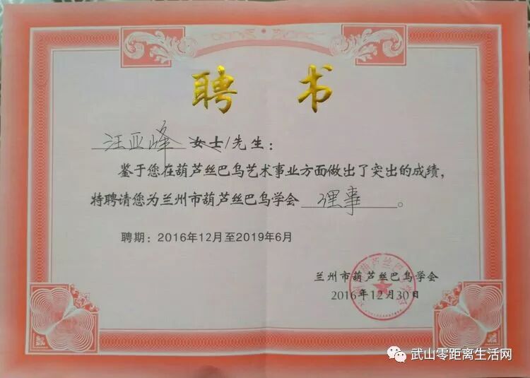 汪亚峰,中国民族管弦乐学会葫芦丝巴乌专业委员会会员,自幼喜爱音乐,自学了吉他、竹笛等乐器,葫芦丝师从于青年葫芦丝演奏家、兰州市葫芦丝巴乌学会会长、秦丝韵葫芦丝教育连锁机构学校校长刘亮先生。现任兰州市葫芦丝巴乌学会常务理事,武山县城关三小少年宫葫芦丝兴趣小组辅导教师,武山县老年大学葫芦丝班辅导教师,创办武山宁远葫芦丝巴乌乐坊,多次参加各种演奏、交流活动,并辅导学校师生学习葫芦丝演奏,参加各级各类演出。近年来,辅导的学生在各种比赛、考级及演出中取得了优异成绩。2015年参加武山县青少年才艺大赛荣获器乐组第一名;2017年8月受邀参加刘亮葫芦丝师生音乐会,吹奏《木鼓神韵》(甘肃交响乐团伴奏),2017年8月,在甘肃兰州参加了”刘亮全国葫芦丝专业教师研修班”。