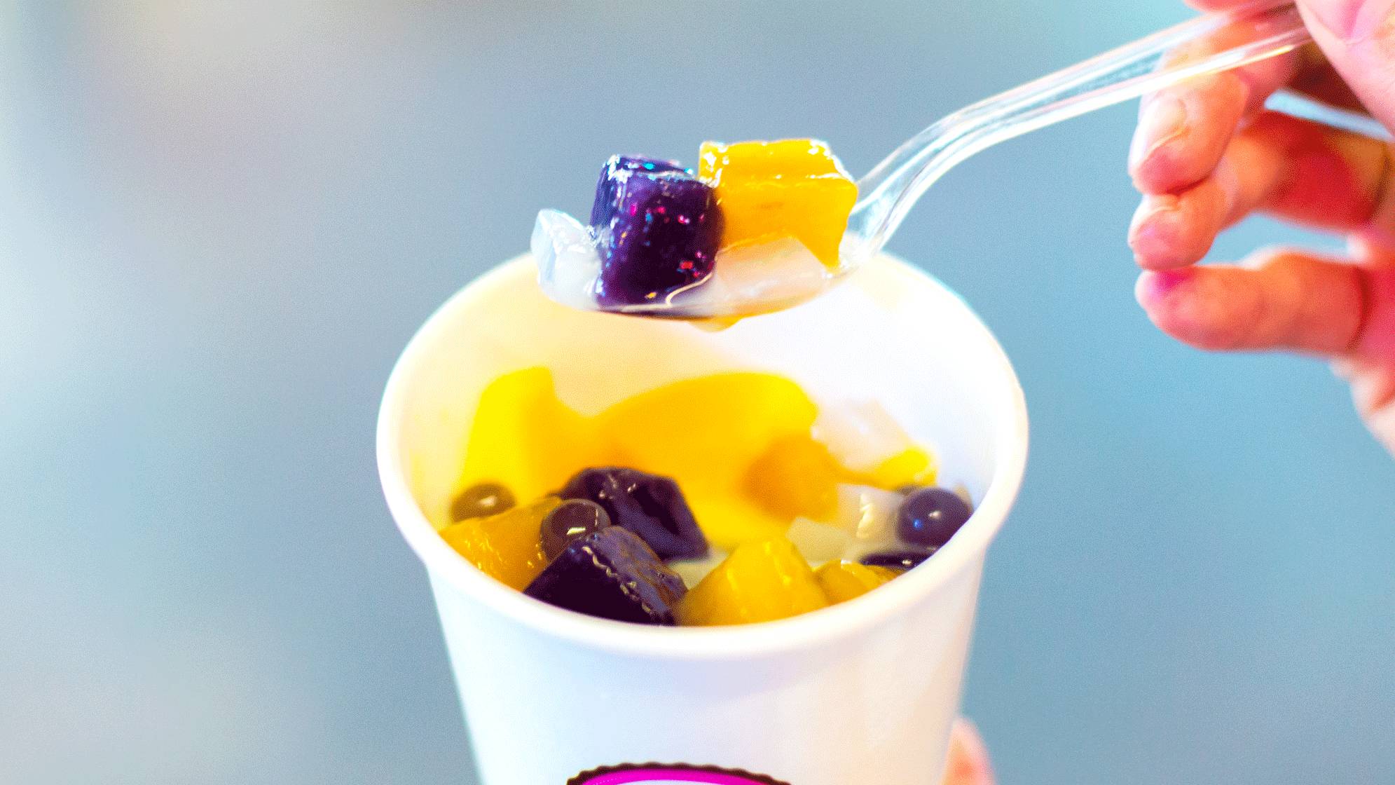 咸的东西吃多了非常需要糖水来治愈一下,原来叫37°C,现在改名叫做芋意坊。芋圆2号里有布丁、双皮奶、椰果和爆珠,满满一杯全都是料。