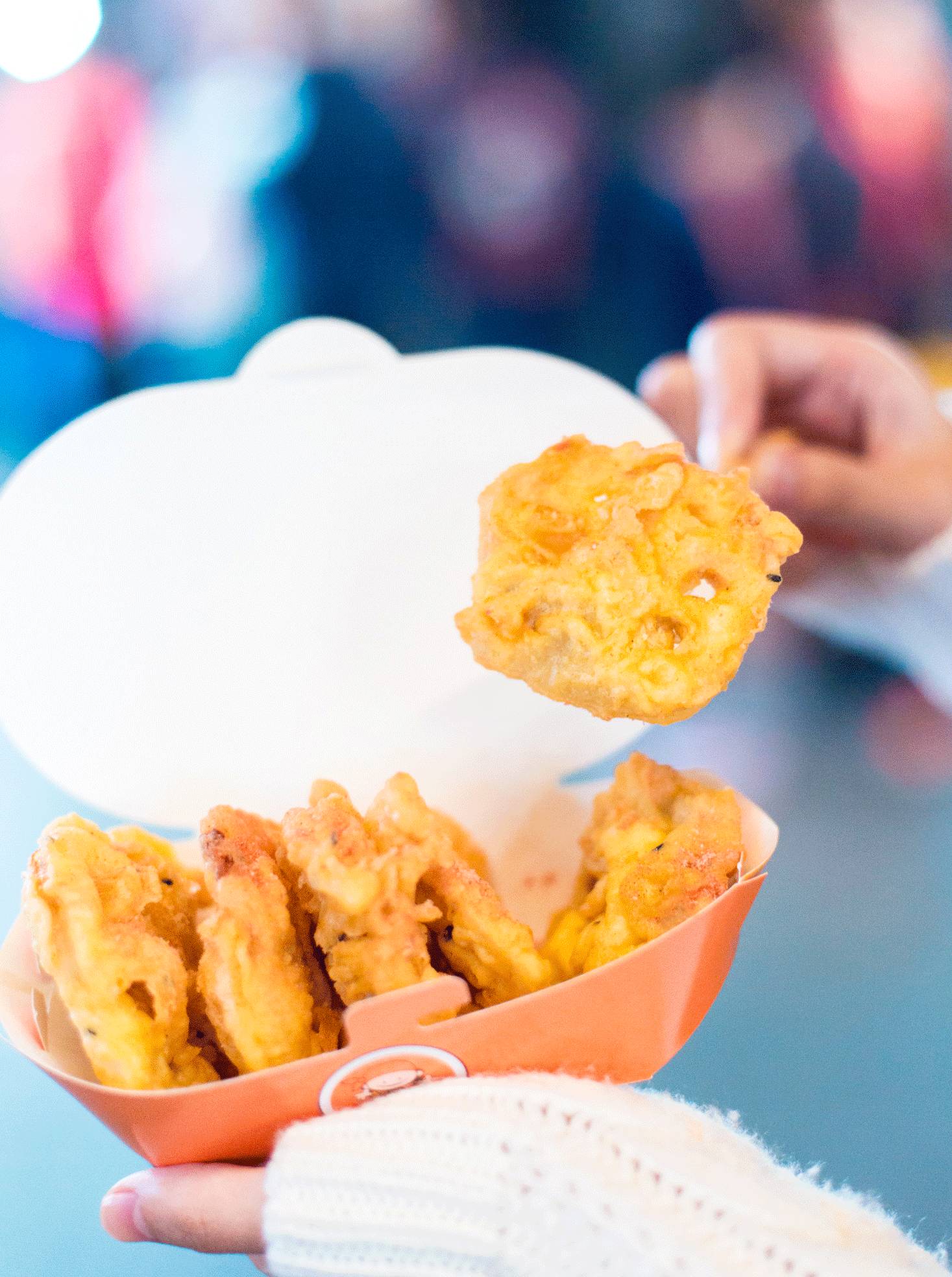 食堂里打快餐总喜欢点份藕夹,来这里也不例外,排队的人不多,一会就能吃到热腾腾现炸好的。梅子粉轻轻点点撒上去,藕夹里面夹了少少的肉糜,外面裹得粉炸的酥脆,6元6个可以说很划算了!