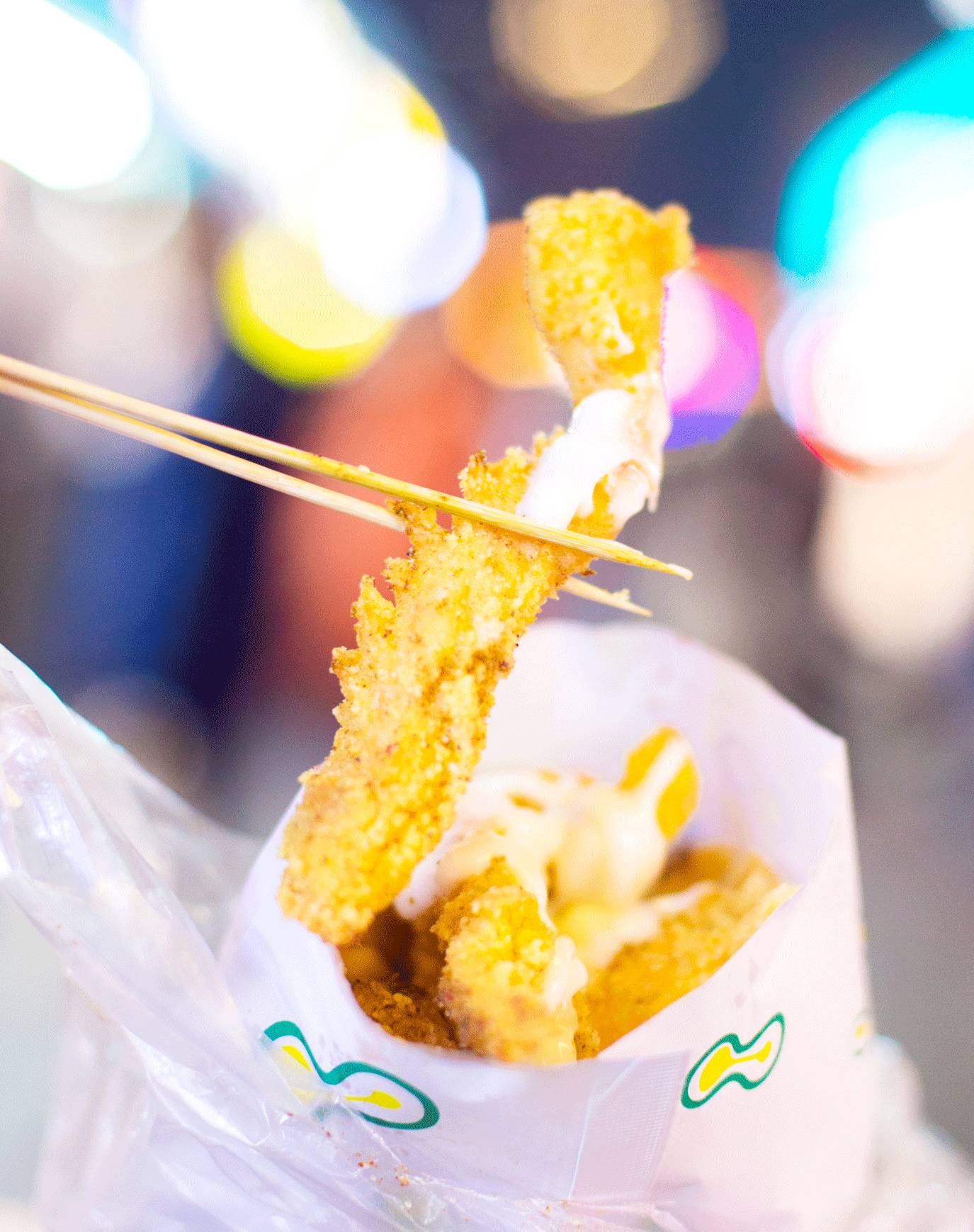 面粉裹得不是很多,香香酥酥的长条状,沙拉酱番茄酱或是辣的都是一样的好吃,这一袋吃完,只想满足地拍拍肚子打个饱嗝。