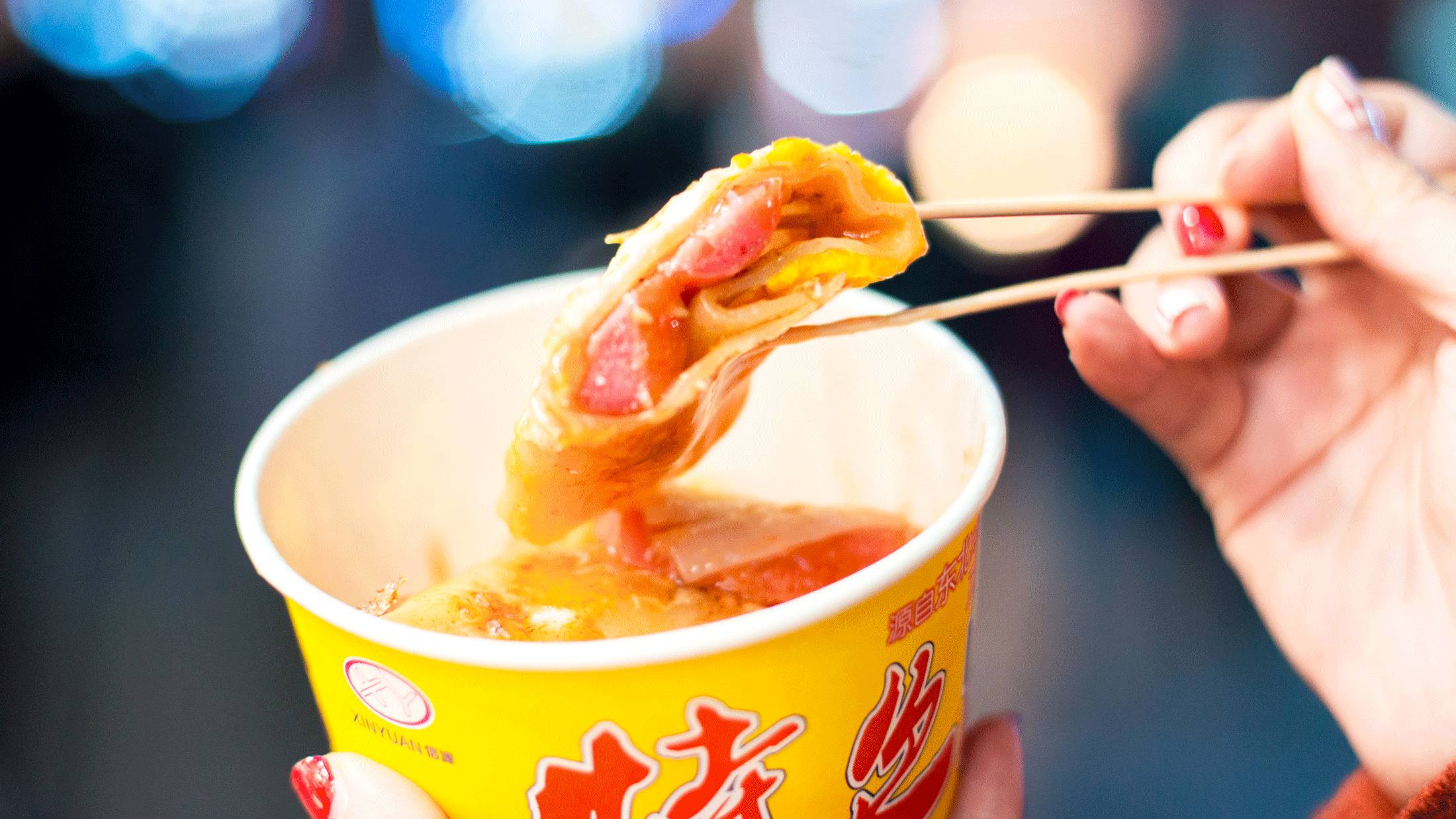 烤冷面是夜宵一霸!虽然队伍排的长长的,做烤冷面的可爱小姐姐动作却不紧不慢地优雅摊着面,心急…馋…香死了……