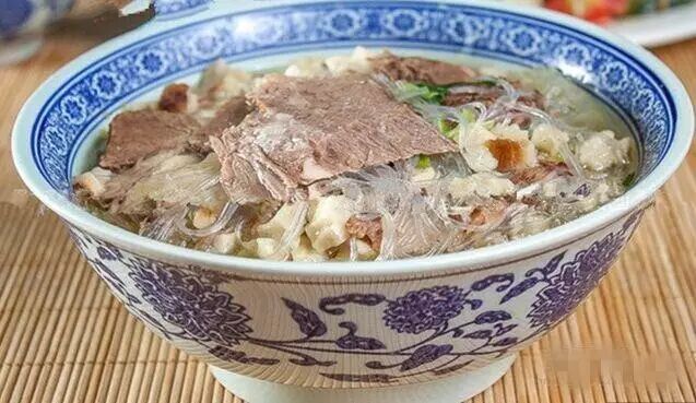 单走:用泡馍肉、粉丝、蒜苗烩成汤,就莜面饼而食;