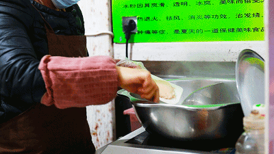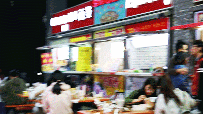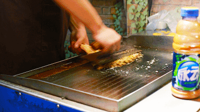 烤冷面是夜宵一霸!虽然队伍排得很长,做烤冷面的可爱小姐姐动作不紧不慢地优雅地摊着面!!