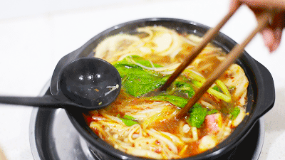超多人喜欢这家温州瘦肉丸,每份都是现做的,过程可以说是很有趣了。勺子一推一推的,捶打后的肉糜就进锅准备变成一个个不规则的小肉丸了!