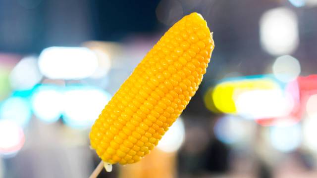 先在架子上烤,而后放进烤炉里。小哥熟练地为玉米脱去外衣,露出光泽莹润的内里……(刹车!)