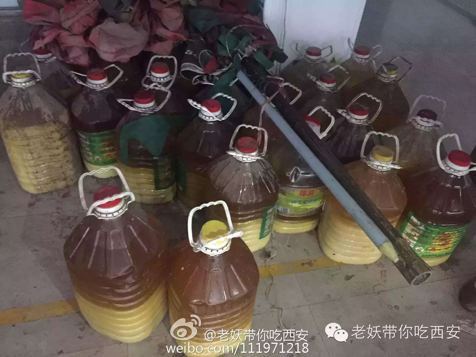 到下午五点多时有回民街的人发说明:油是马德全家的鸡油,拆了他家违建棚子,图中显示的油是他在搬家的过程中放在路边的,并非是查收的,而图中门头中的马峰腊牛肉店明显是躺枪了。