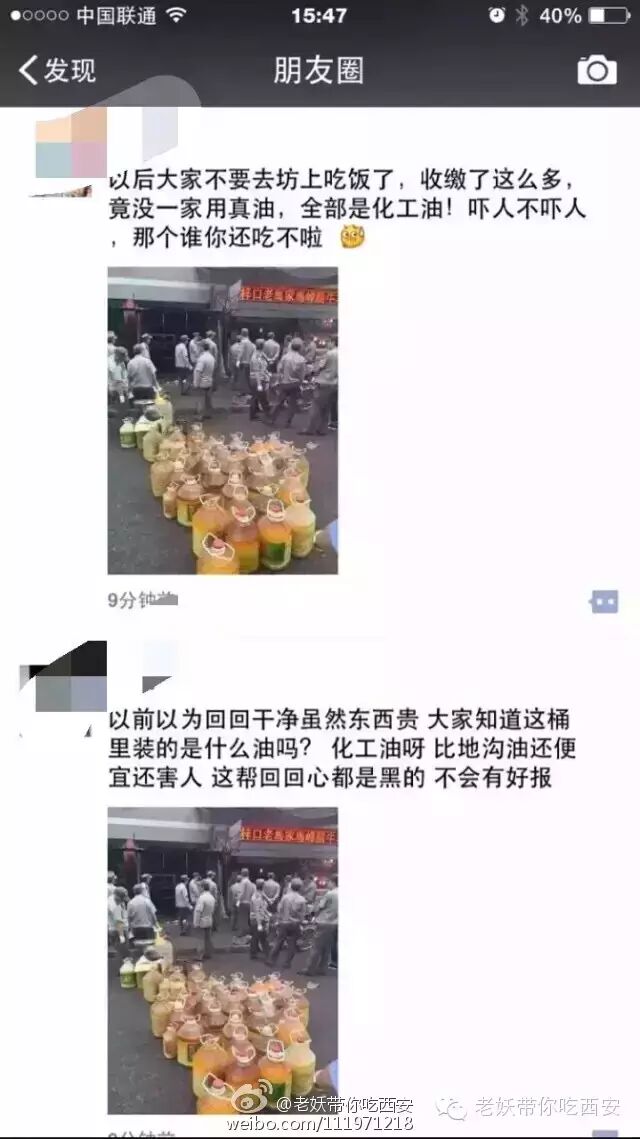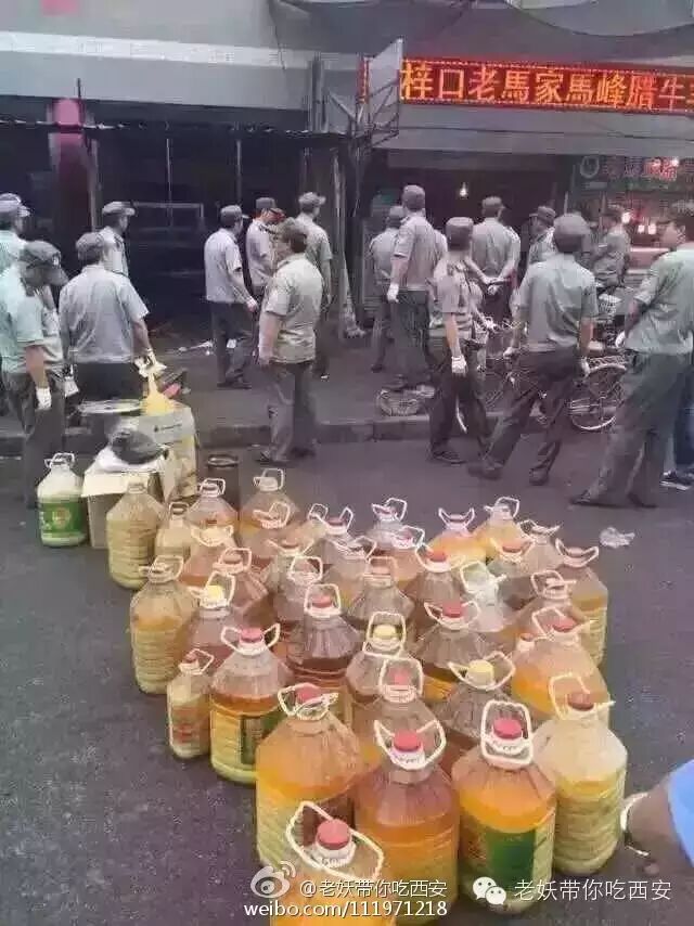 事件是这样开始的:从昨天中午,朋友圈就被一条回民街被查到工业油的信息刷爆了,并且配有一张图!相信很多人都看到了,随后有官方出来辟谣,证实是在桥梓口拆除违章建筑,并非在查处商家用工业油的事,其实明眼人从图片中的制服就能看出来,会去查地沟油吗?但僻谣远远没有谣言传播的快。