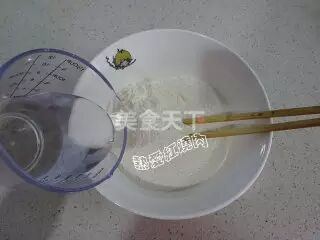 9、把米淘洗干净,然后放入少量的水。(水的量比平时蒸饭的量稍少一点)