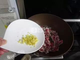 4. 坐锅上火倒入洗净切好的生姜片,倒入调和油。