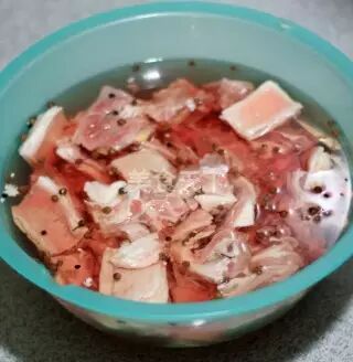 1、羊蝎子买回来用清水充分的将血水拔出来。至少4个小时以上,中间换2-3次的水。