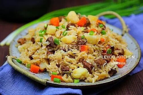 11、米饭焖好后翻拌匀均即可盛出开动啦。