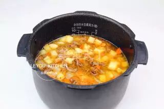 15. 启动牛羊肉键,摁上快速沸腾键炖煮2小时。