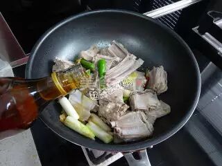8、锅里倒油,放入羊排翻炒至外表金黄,盛起。