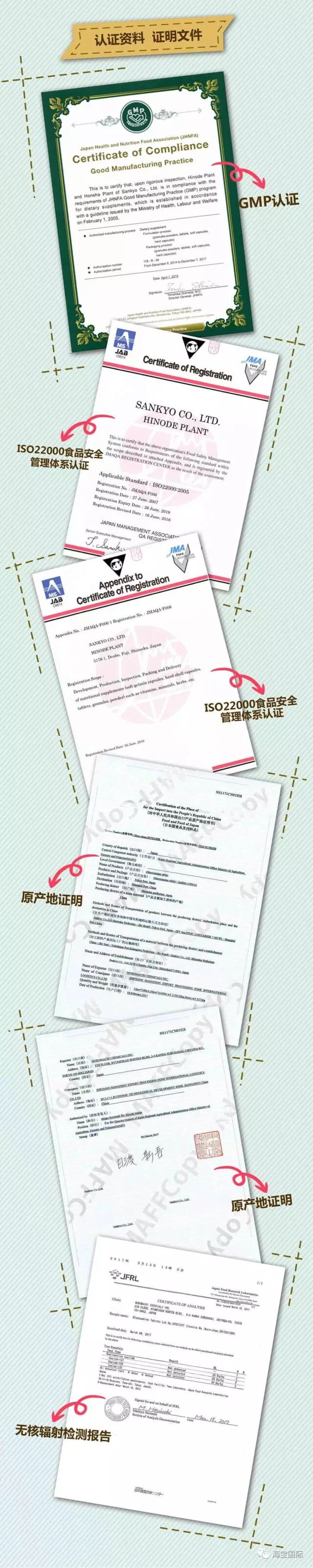 每款产品有自己的原产地证明、出厂检验检疫报告、、海关出具的报关单、产品进口通关手续。