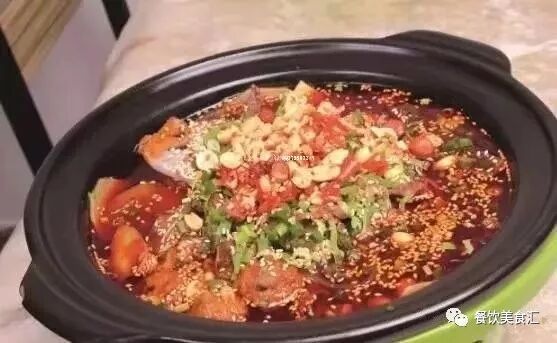 2、将酸菜鱼与水煮鱼的口味相结合,炒香酸菜垫底,最后又泼上大量的油辣椒,成菜既有酸菜鱼的酸鲜,又有水煮鱼的辣香,非常好吃。