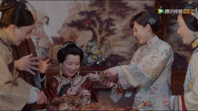 烤全羊这段很赞,去迪化做生意赚了钱的周莹回来就请吴家人吃了一顿西域风情的大餐~