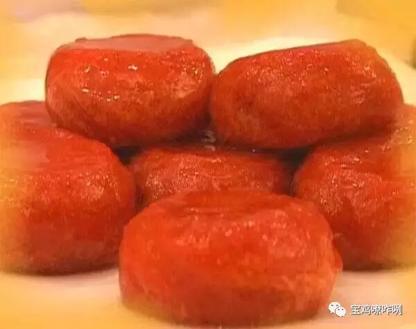 黄桂柿子饼,是一种柿子和面制成的风味小吃,是临潼特产“火柿子”制作而成。其特点是色泽鲜亮,甜而不腻