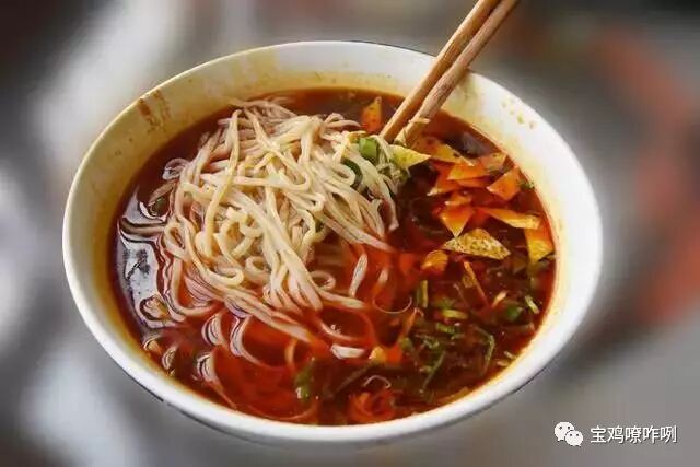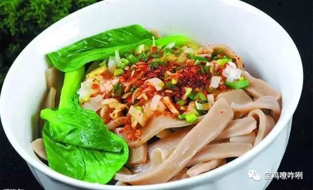 陕西biang biang 面食陕西关中传统特色风味面食,是传统的陕西裤带面,因制作的过程中 biang biang 的声音而出名。将上等的精面粉手工拉成长宽筋道的面条,加上小葱、酱油、辣椒面等用热油泼制而成