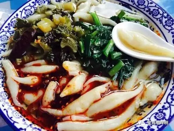 浆水鱼鱼是一道著名的陕西风味小吃,其实并不似鱼,形似蝌蚪。一般有白面、玉米面和淀粉3个品种,可热吃也可凉吃,味道非常鲜美。特别是夏季吃是最适合不过的了,可缓解夏季烦躁,酸辣爽口是夏季提升食欲的最佳美食