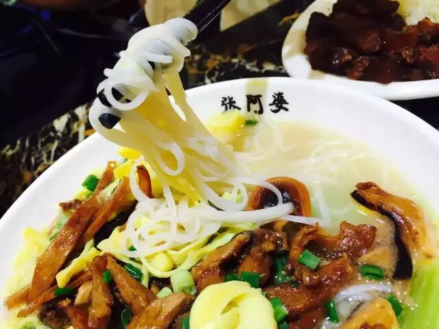 阿婆做面只用龙须面,还只能是从江西空运过来的,相当讲究。主要的招牌就是墨鱼面和烧肉面。墨鱼挺粗一根一根的,味道有点偏甜,烧肉坨坨也很拽实,反正就是很良心~里面还加了蛋皮,丝丝滑嫩让你防不胜防!