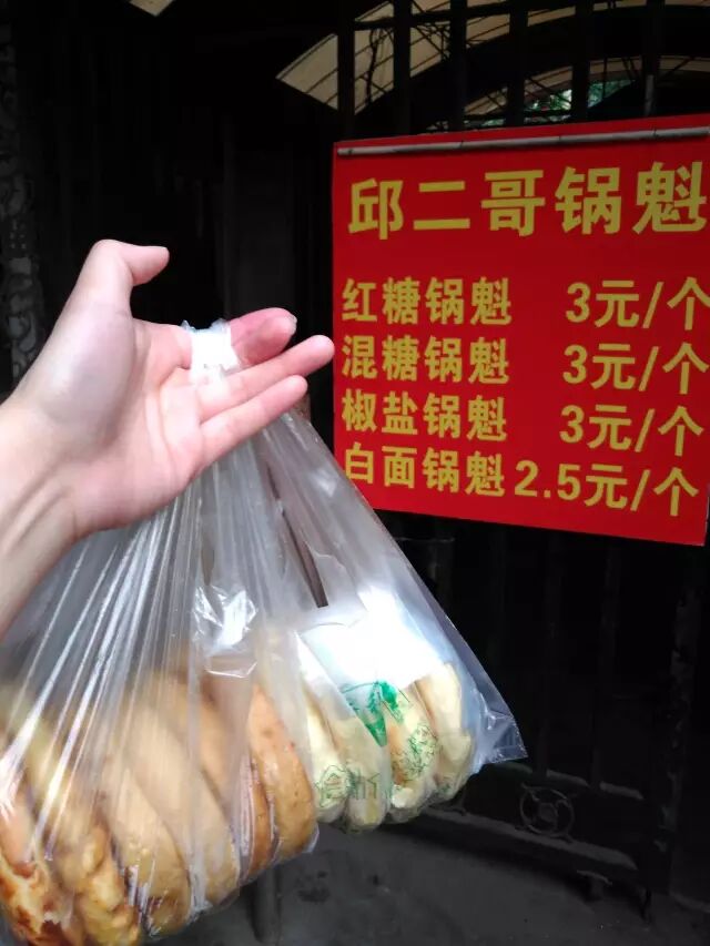 只卖三种锅盔,红糖、猪肉、牛肉。每天都要排队的节奏,幸好每个人只能买四个,不然只有等得你干瞪眼。。。红糖的没有另外两款荤的出色,牛肉和猪肉的锅盔很厚实,里面肉馅儿也还算多,比较麻,但是洪哥个人比较喜欢这种口感,总体来说值得排一会儿!