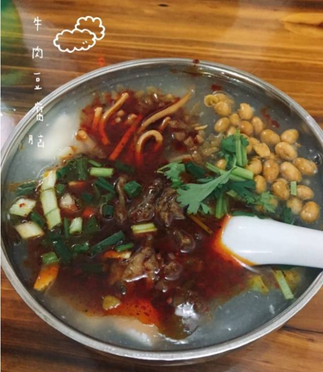 要是你是在成都生活的北方人,那你就有福了。这家算是洪哥发现的比较正宗的肉夹馍了~肉可以选纯瘦、肥瘦或者全肥,洪哥比较喜欢肥瘦的,腊汁味很足。凉皮比较软,配料很丰富,味道够但是海椒对于成都人来说还是少了点。对了,不要忘了来一听冰峰~