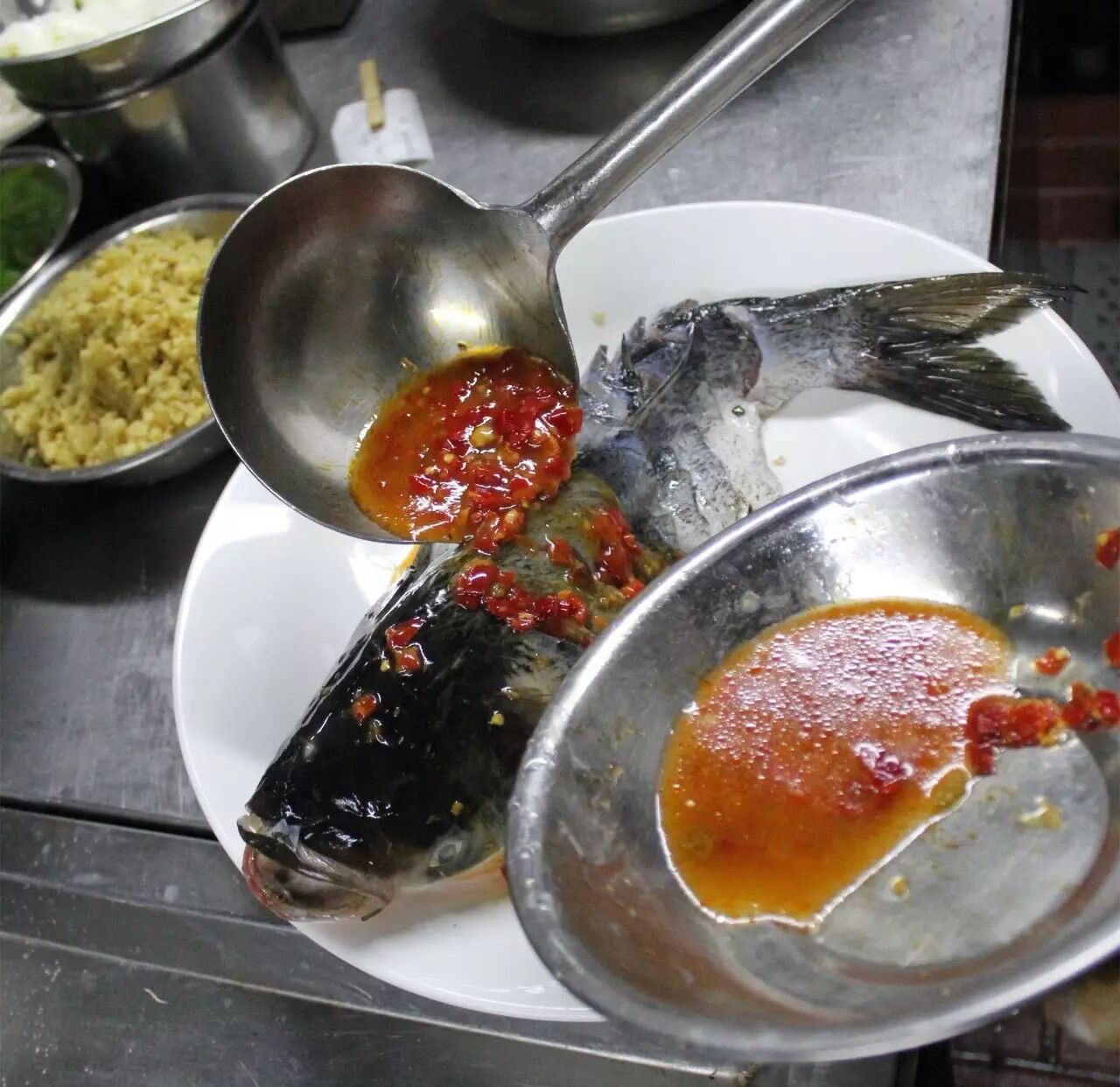 2、剁辣椒加黄姜汁拌匀,淋在鱼身。![]()