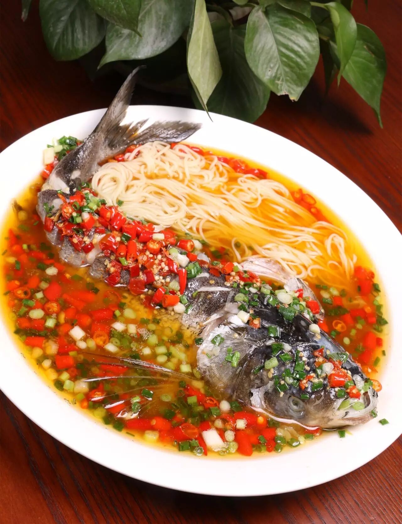 电影《美人鱼》票房大卖之时,餐厅顺势推出这道火爆鱼肴。花鲢在盘中摆成曲线造型,用黄姜汁水浸透剁辣椒和小米椒,再分别浇淋鱼身使其彻底入味,覆膜蒸熟即可上桌,走菜迅速快捷、口感鲜嫩麻辣。