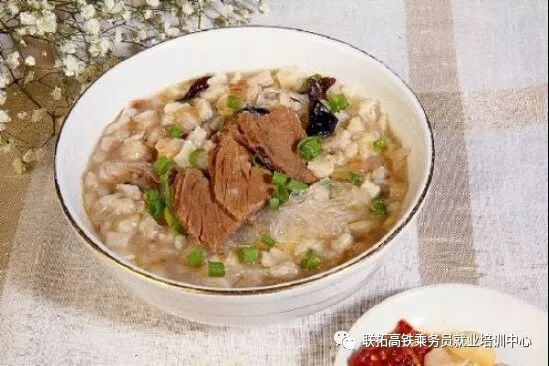 羊肉泡馍简称羊肉泡、泡馍,制作原料主要有羊肉、葱末、粉丝、糖蒜等,古称"羊羹",尤以陕西西安的牛羊肉泡馍最富盛名,烹制精细,料重味醇,肉烂汤浓,肥而不腻,营养丰富,香气四溢,诱人食欲,食后回味无穷。如今牛羊肉泡馍已成为陕西名食的"总代表"。