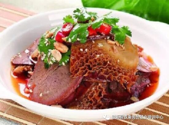 夫妻肺片是一道四川名菜,通常以牛头皮、牛心、牛舌、牛肚、牛肉为主料,进行卤制,而后切片。再配以辣椒油、花椒面等辅料制成红油浇在上面。色泽美观,质嫩味鲜,麻辣浓香,非常适口。