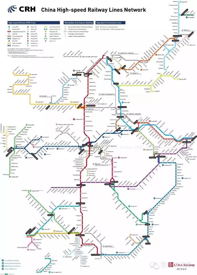 最近,网上有牛人把我国的高铁线路图进行优化,用32种配色清晰地画出高铁路线,甚至精细到每一个站点,可以清楚了解城市与城市之间的高铁网络连接。一起来看看吧!