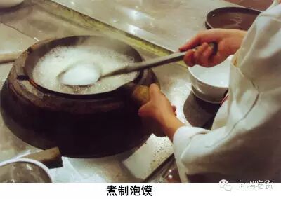 泡馍这东西做起来还是很讲究的,传统作法有三种:一个是“干泡”,通过煮制,汤汁完全入馍内。馍筋而韧、粘而滑;第二种是“口汤”,煮的馍酥绵光滑,吃完碗内留汤一口;第三种是“水围城”。宽汤煮馍,碗四周是汤,中间是馍。