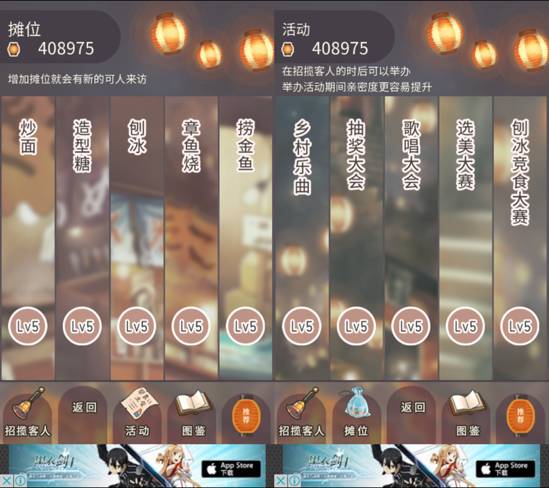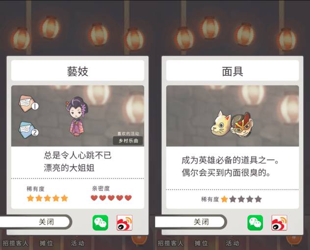 摊位和活动的级别越高,稀有客人出现的可能性越大,