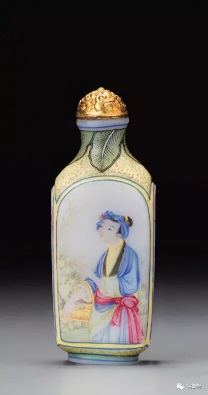 清乾隆 御制料胎画珐琅仕女图长方鼻烟壶