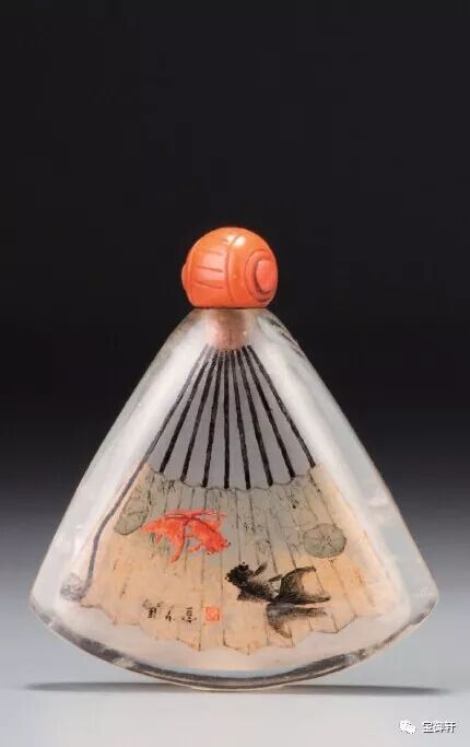清末 马少宣作水晶内画折扇图鼻烟壶