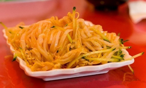 凉皮为陕西汉族特色小吃之一,又称陕西凉皮。凉皮分为米面皮和面皮两大类,米面皮实为米皮。河南濮阳另有一种卷凉皮。